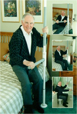 SuperBar™: A horizontal pivoting and locking bar that attaches directly to the SuperPole™. Designed uniquely for people who require moderate assistance to achieve small steps during transfer.